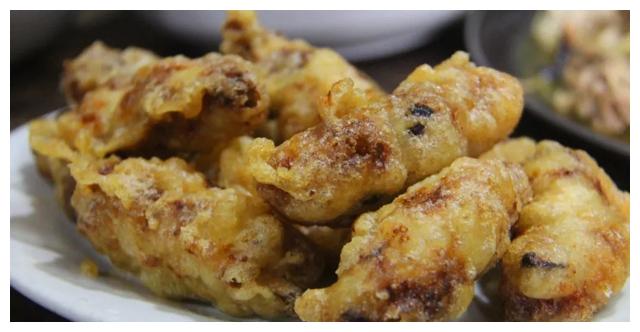 石塘炸蚝豉是一道风味油炸美食,将冬笋、香菇、肉末、马蹄等食材加入蚝豉调配均匀,然后裹上面粉油炸而成。酥香美味,风味独具,让人越吃越爱吃。