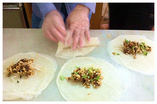 百侯薄饼是梅州的特色小食,薄如纸的饼皮包入肉末、香菇、豆干、豆芽等,口感细腻,味道鲜美。