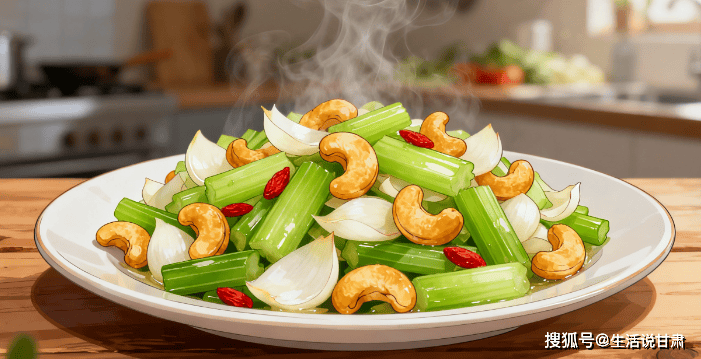 西芹百合炒腰果,这是兰州家家户户都会做的经典小炒。西芹的碧绿爽脆,百合的洁白清甜,腰果的金黄酥香,在急火快炒中碰撞融合。这道菜色泽明快,口感层次丰富,既寻常又见功力,是兰州人秋日餐桌上的“当家花旦”。