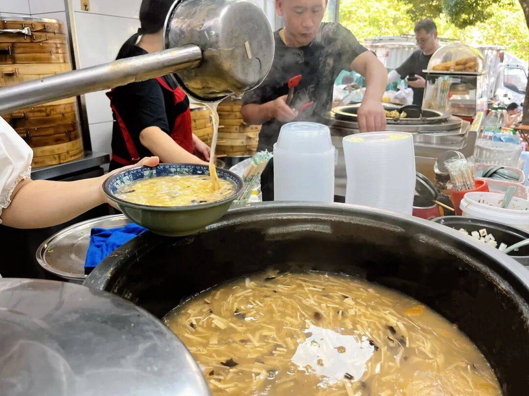 老板是土生土长的安徽汉子,他说,那碗“月䪞”汤是刻在骨子里的念想。在安徽老家,清晨的街头巷尾,总少不了那声熟悉的吆喝:“来碗sà汤,配俩包子!”如今,这份刻在乡音里的默契,被他装进汤勺和面盆,从淮河畔带到了江南水乡。